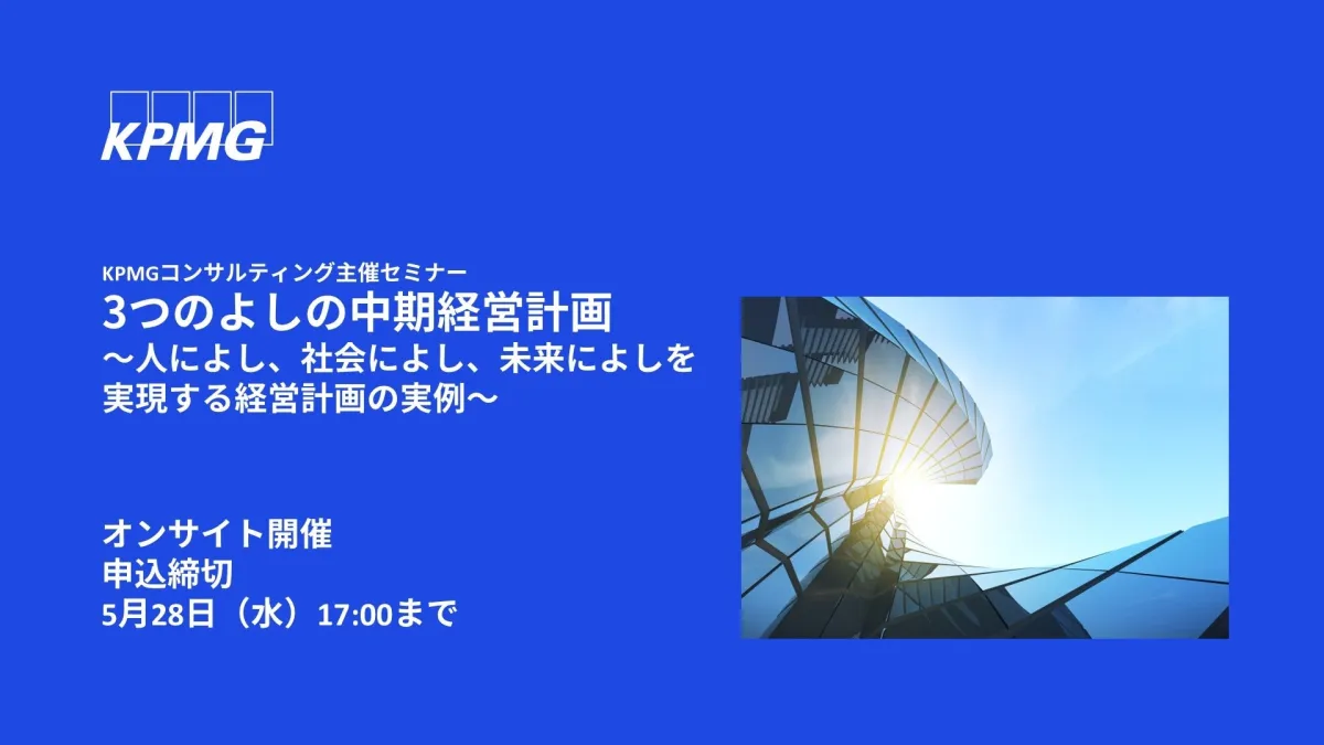 企業の経営環境が急激に変化する昨今、中期経営計画の重要性が増しています。KPMGコンサルティングは、2025年6月4日(水)に、企業価値向上と経営課題の解決に資する中期経営計画の策定支援をテーマにしたセミナーを開催します。
