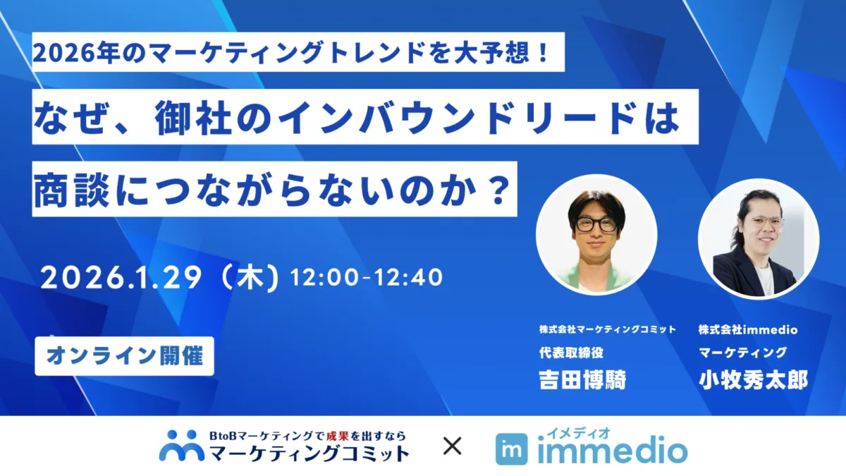 - - セミナー名: 2026年のマーケティングトレンドを大予想!なぜ、御社のインバウンドリードは商談につながらないのか