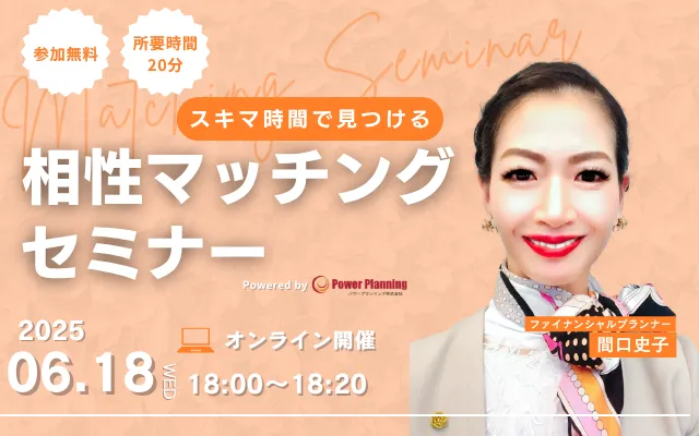 6月18日(水)18時から、パワープランニング株式会社が運営する「アットセミナー」にて、「相性マッチングセミナー」がオンラインで開催されます。このセミナーは、忙しい日々の中でスキマ時間を利用して、自分にぴったりのファイナンシャルプランナー(FP)を見つける機会です。参加は無料ですが、席は15名限定なので、早めの申し込みが必須です。