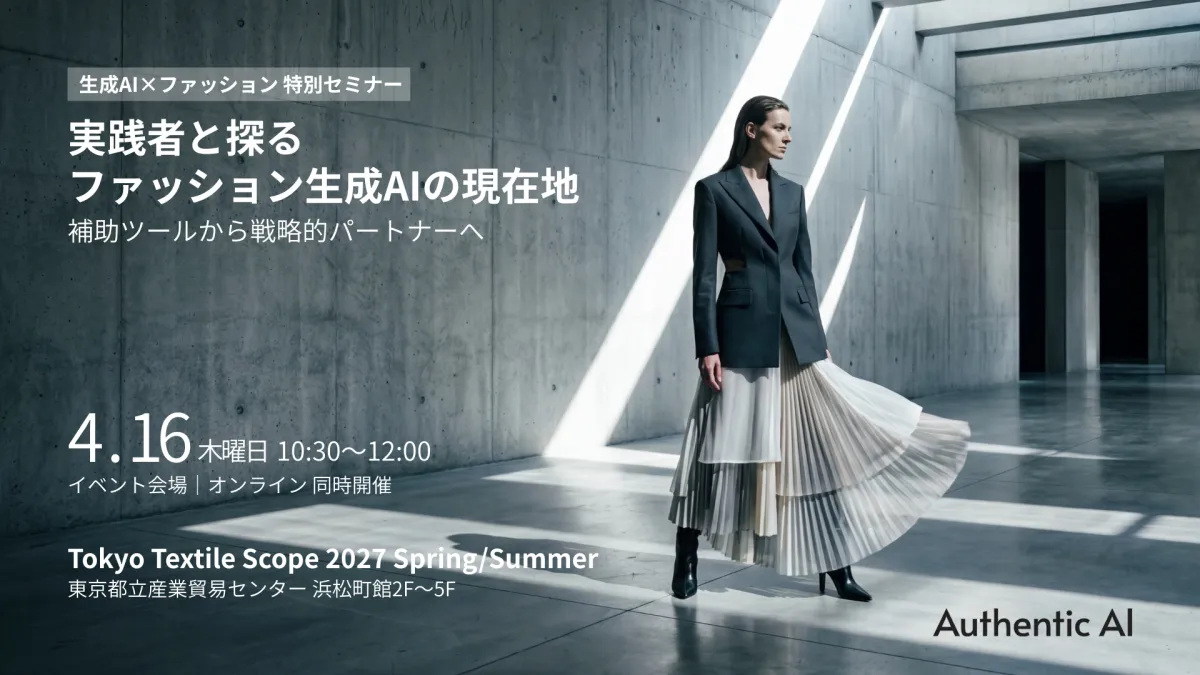 2026年4月16日、東京都立産業貿易センター浜松町館で、「第3回 Tokyo Textile Scope」の2日目に、特別セミナーが開催されます。本セミナーでは、生成AIを用いたファッション業界における戦略的な応用方法が探求され、専門家による実演が行われる予定です。