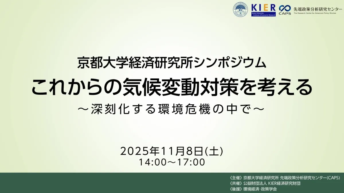 2025年12月5日、株式会社エスプールブルードットグリーンの取締役社長である八林公平氏が、京都大学経済研究所のシンポジウム「これからの気候変動対策を考える~深刻化する環境危機の中で~」に参加しました。このイベントは、日本や世界各地で頻発する異常気象や気象災害への対応が急務とされる中で開催され、各分野の専門家が一堂に会し、その解決策を模索しました。