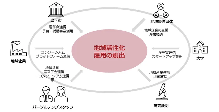 パーソルテンプスタッフは、地域におけるデジタル技術の適用や新しい働き方の模索に関して、地域のICT基盤や人材育成を強化するための取り組みが不可欠だと考えています。特に、育児や介護に縛られた方々に対し、リスキリングやキャリア支援を通じて彼らのスキルを向上させる体系を整え、地域全体で成長するための土台を築きます。