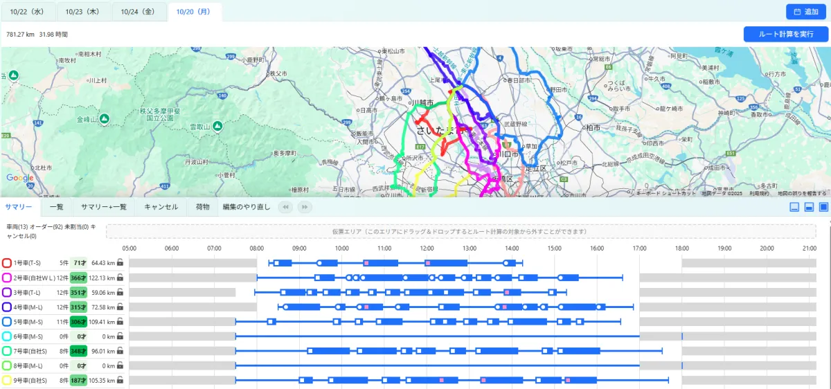 OptyLinerは、量子コンピューティングと数理最適化という先端技術を駆使した自動配車システムです。このシステムは、高速な処理能力と直感的なインターフェースを特徴としており、特に大型商材の配送において柔軟なパラメータ設定を実現されています。これにより、さまざまな物流ニーズに応じて配車計画を効率的に作成することが可能となります。