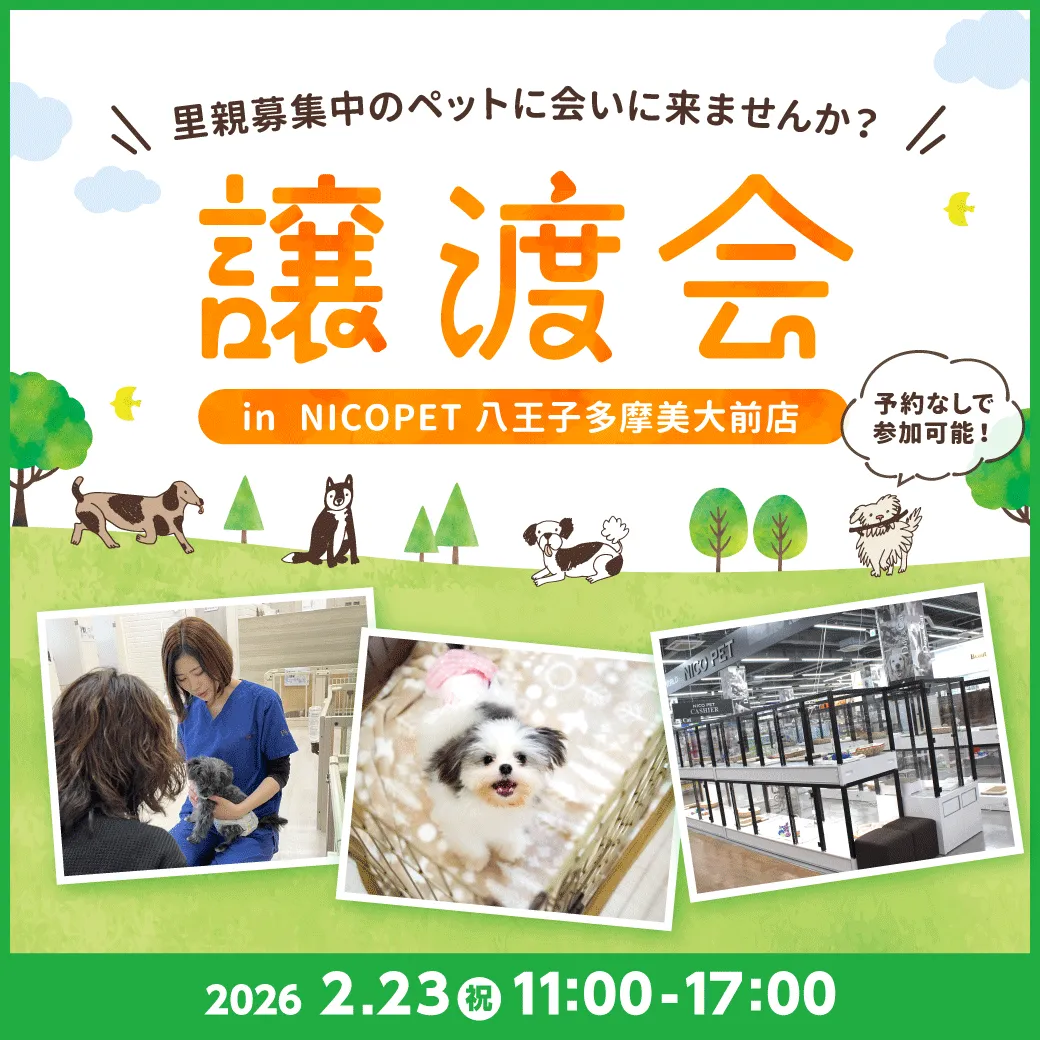 ペッツファーストホールディングスは、「Pets always come first」を理念に、2026年2月23日(月・祝)に八王子市にて譲渡会を開催します。このイベントでは、愛するペットとの新たな出会いが期待されます。場所はNICO PET八王子多摩美大前店の中で、11:00から17:00まで行われる予定です。
