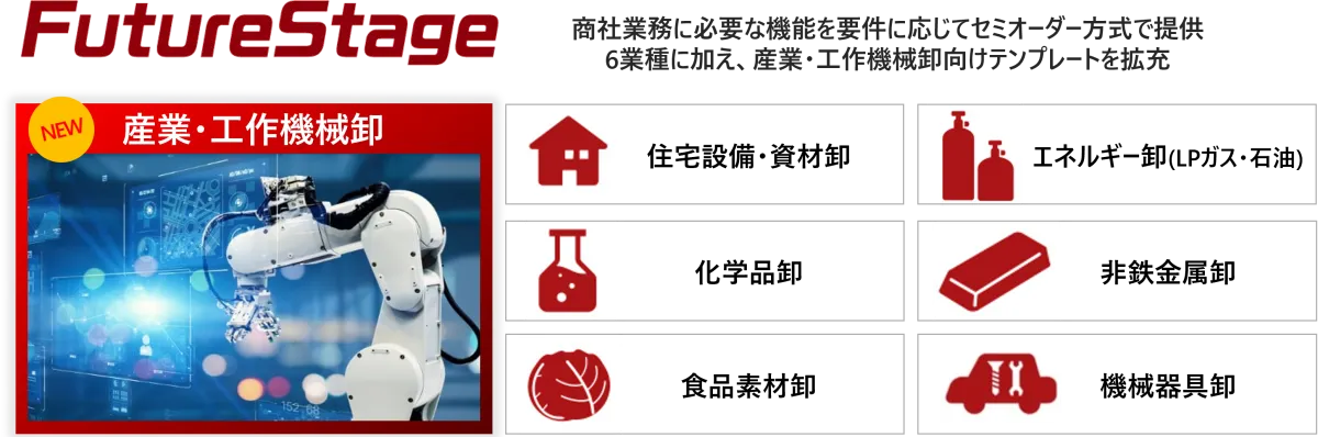 「FutureStage」は商社業務の効率化を実現するために設計されたソリューションです。産業・工作機械卸向けの特化した新テンプレートは、企業が直面する複雑な課題に対する革新をもたらし、業務の見える化や効率化を推進します。さらに、このシステムの導入により、企業は新たなビジネスチャンスを見出すことができるでしょう。