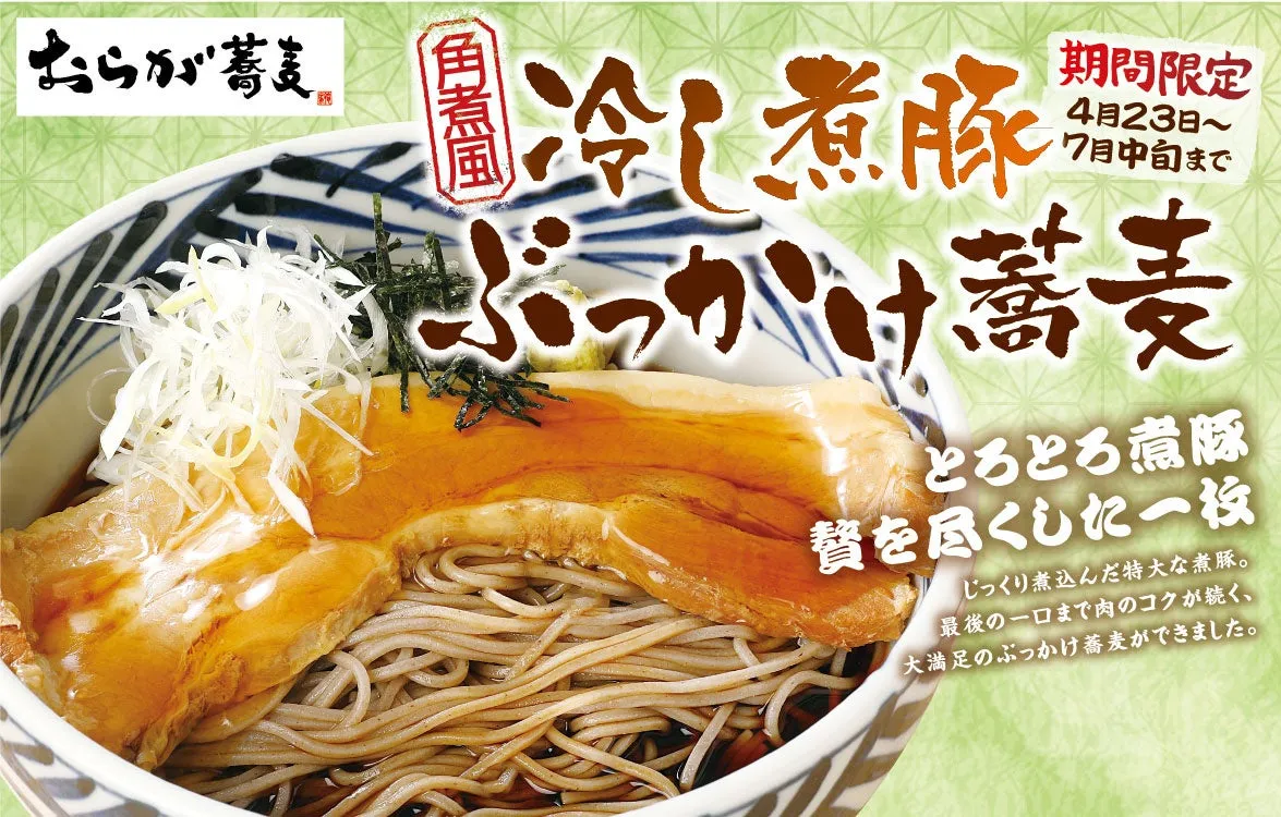 大阪を拠点にする株式会社グルメ杵屋が運営する「おらが蕎麦」は、2026年4月23日より期間限定メニューとして「角煮風 煮豚ぶっかけ蕎麦」を提供開始します。見た目やボリューム感にこだわったこの新しい冷しそばは、気温が上昇する季節にぴったりの一品です。特大の煮豚がどっかりと載っているのが特徴で、食べ応えは抜群。