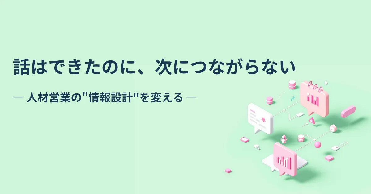 最近、営業活動における新たな課題が浮き彫りになっています。それは「話せるのに成果が出ない」という現象です。人材業界のインサイドセールスにおいても、同様の声が頻繁に聞かれるようになりました。この背景にあるのは、会話によって得た情報の管理や活用が不十分であることです。具体的には、株式会社プロメディアラボが発表した資料『話はできたのに、次につながらない ― 人材営業の“情報設計”を変える ―』に焦点を当てます。