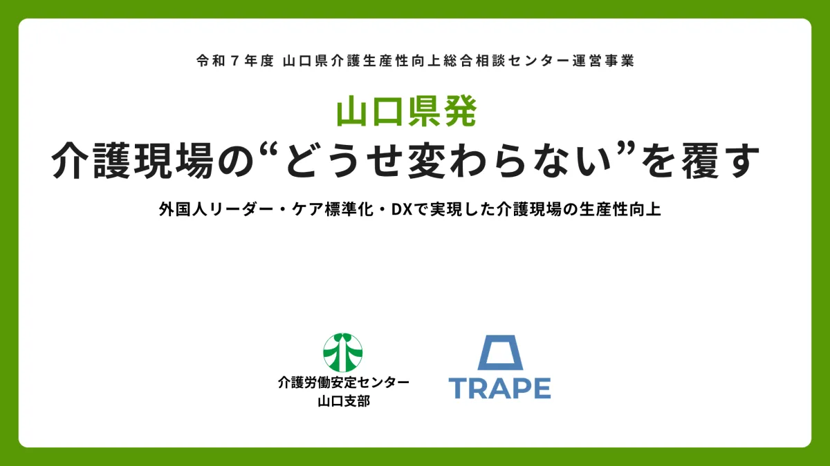 介護現場における課題として、人手不足や業務の生産性向上が挙げられます。特に、山口県は全国の中でも高齢化が進行しており、これに伴って介護人材の不足が深刻化しています。株式会社TRAPEは、この状況を改善するための支援を行ってきました。具体的には、介護現場との対話を通じて、業務改善や生産性向上を目指しています。