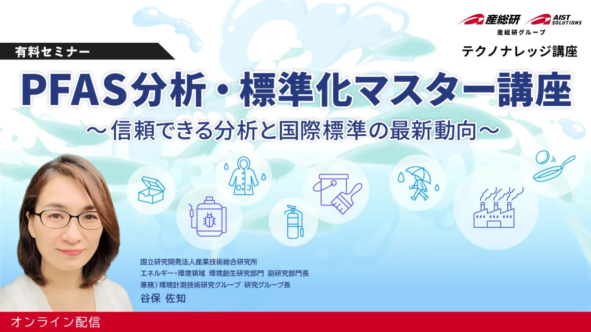 環境問題への関心が高まっている現在、PFAS(ペルおよびポリフルオロアルキル化合物)に関する分析と管理は、持続可能な社会の構築に向けた重要なポイントとなっています。そのため、株式会社AIST Solutionsが日本国内の技術者や企業向けに新たなテクノナレッジ講座「PFAS分析・標準化マスター講座」を開催します。