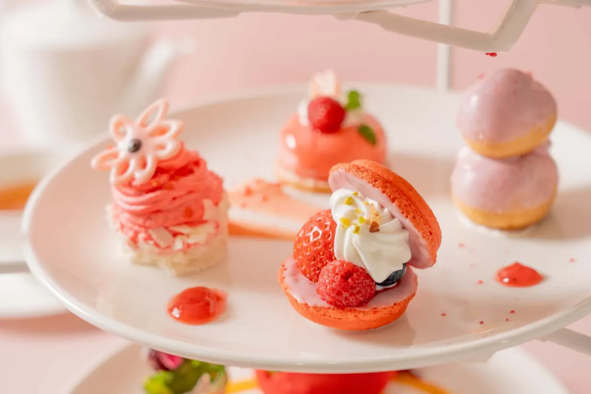 今回のアフタヌーンティーでは、苺をテーマにした多彩なスイーツが用意されています。中でも、「まるごと苺のクラシックタルト」や「三種のベリーマカロン」は、見た目にも華やかで、いちごの魅力を引き立てています。これらのスイーツは、甘酸っぱい苺の風味を存分に楽しむことができ、心躍るひとときを提供します。