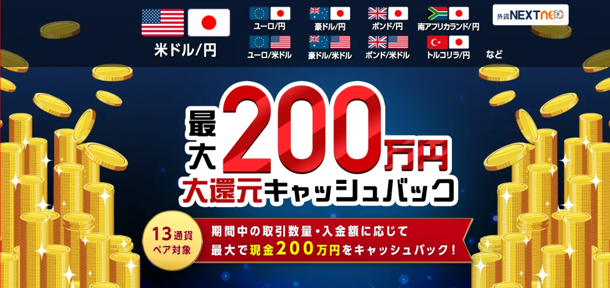 最大200万円還元の大チャンス!外貨ネクストネオのキャッシュバックキャンペーン