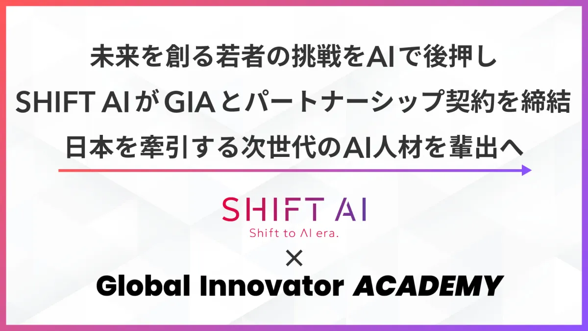 株式会社SHIFT AIは、次世代を担うリーダー育成を手掛けるGlobal Innovator ACADEMY(GIA)との提携を発表しました。このパートナーシップは、日本がAI先進国としての地位を確立するための重要なステップと位置づけられています。