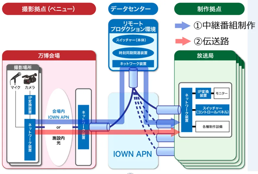 2025年に開催される大阪・関西万博。ここで、NTT西日本グループが実施したのは、最新のIOWN APN(Innovative Optical and Wireless Network)を利用した共同利用型リモートプロダクションの実証です。この取り組みは、大容量で低遅延、さらには「ゆらぎゼロ」の特性を持つIOWN APNによって、番組制作現場に新たな風を吹き込むものとなりました。