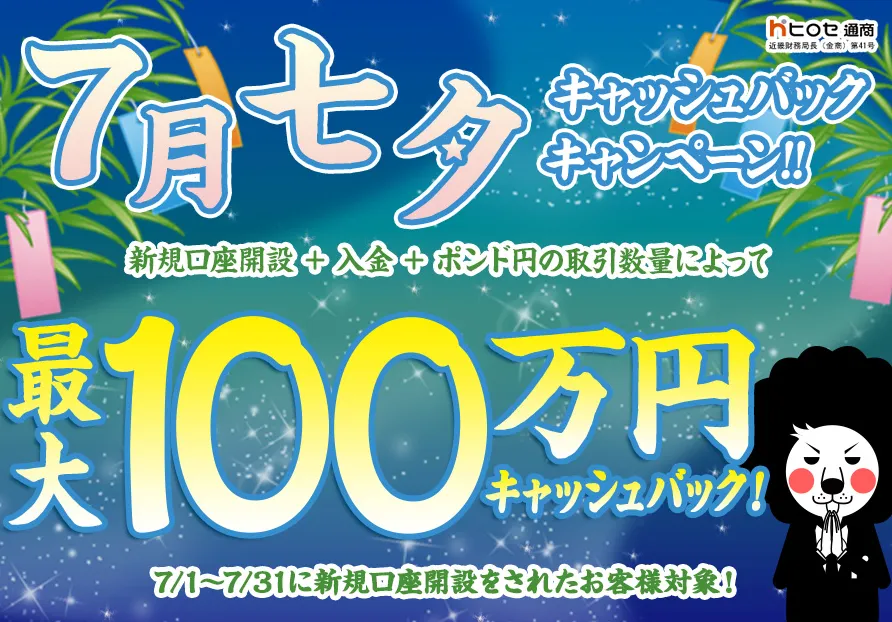 新しい口座開設者に贈る七夕特別キャッシュバックキャンペーン
