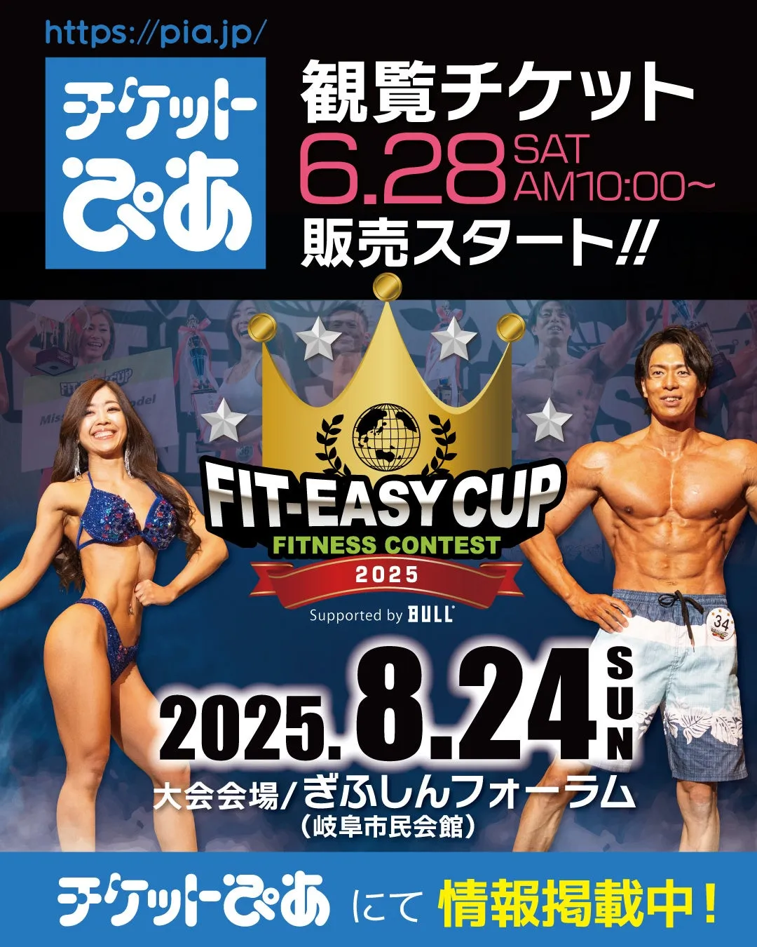 フィットイージー株式会社が主催する「FIT-EASY CUP 2025 Supported by BULL」の観覧チケットの販売が、2025年6月28日(土)午前10時から開始されることが発表されました。この大会は、8月24日(日)に岐阜市のぎふしんフォーラムで開催され、全165名の選手たちが参加する予定です。