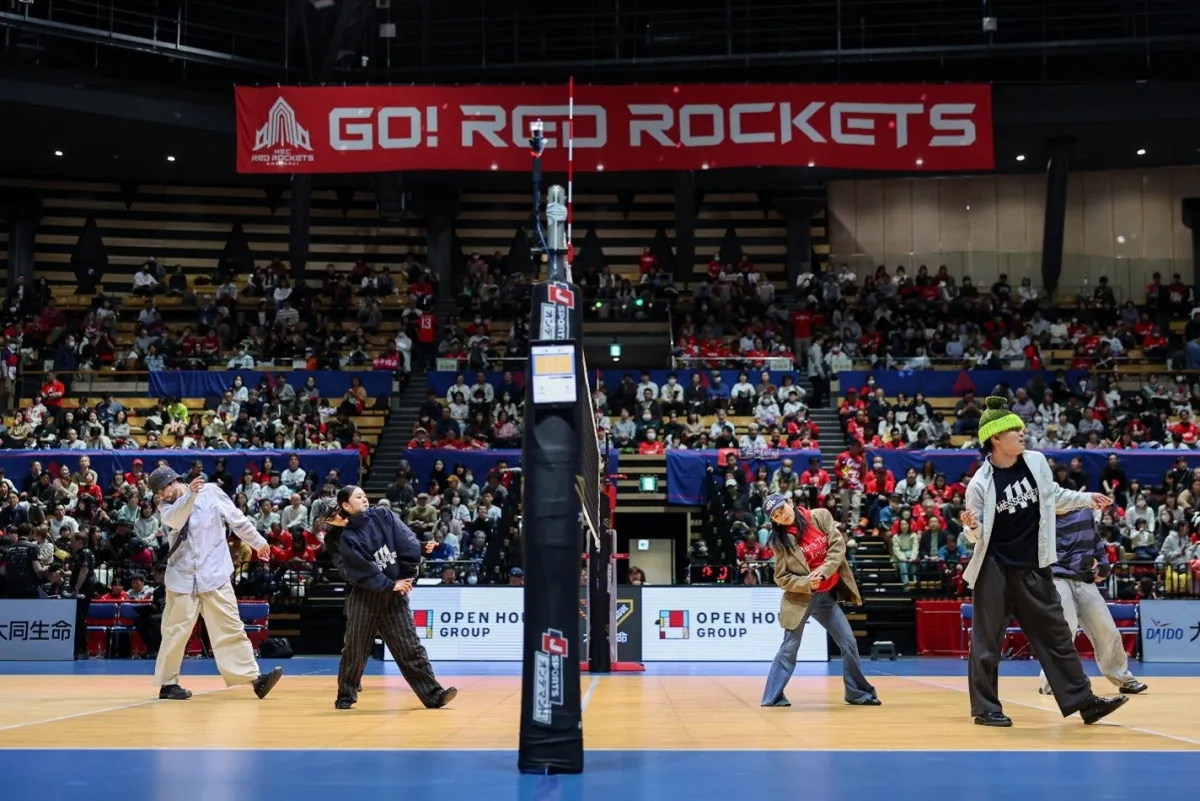 2026年3月22日、東京都大田区の大田区総合体育館で行われた「2025-26 大同生命SV.LEAGUE WOMEN NECレッドロケッツ川崎 ホームゲーム」に、プロダンスチーム『DYM MESSENGERS』が登場しました。このイベントでは、観客を楽しませるためのハーフタイムショーとして、チームのエネルギッシュなパフォーマンスが行われました。