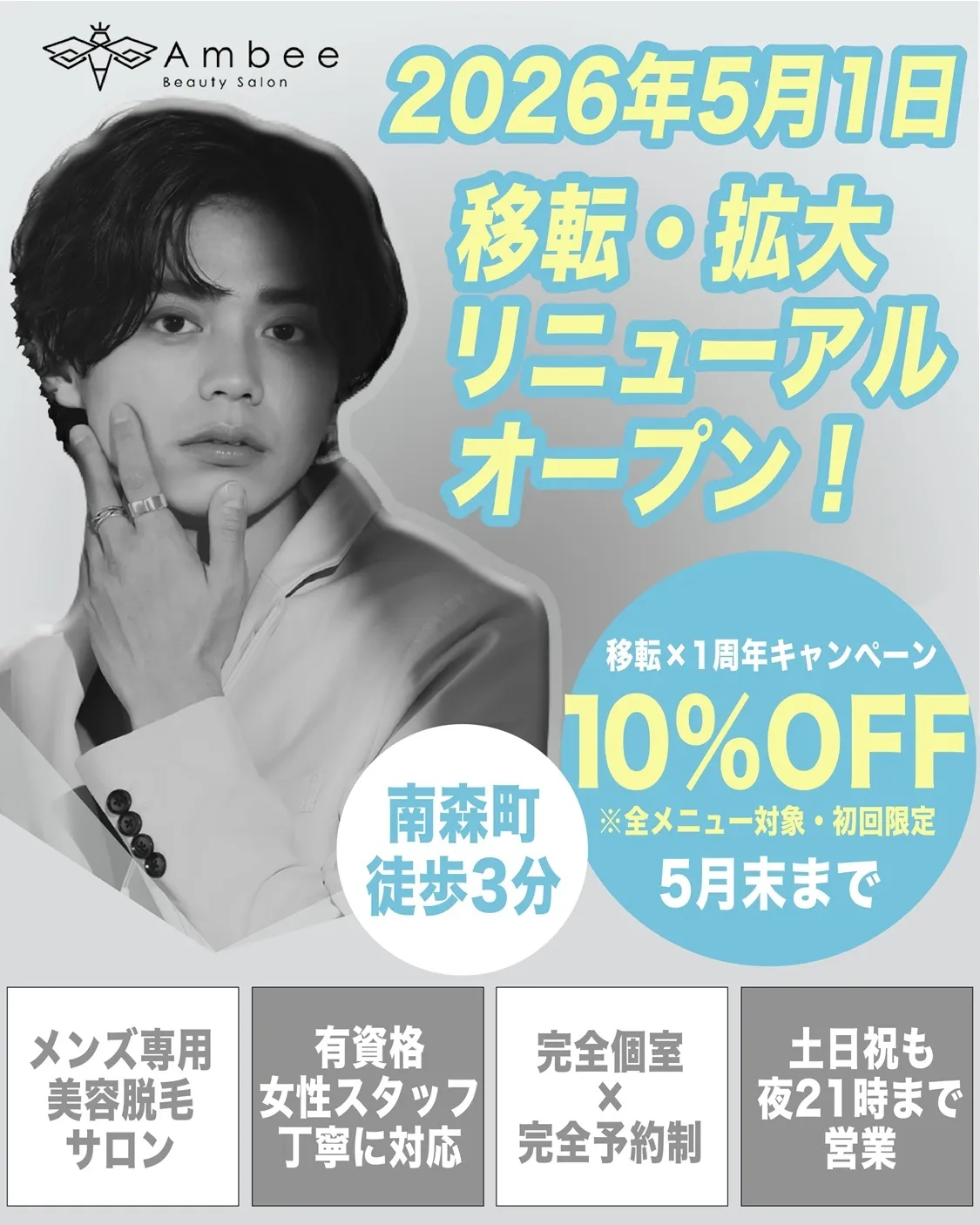 メンズ専用美容サロン『Ambee』が新たなスタートを切ります!