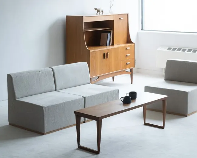 『Comp』の魅力の一つは、張地に浜松のリネン帆布を使用している点です。この素材は、天然素材の心地よさを活かし、お部屋の雰囲気にマッチする多様なカバーが用意されています。カバーを変えることで、インテリアの印象をガラリと変えることも可能です。