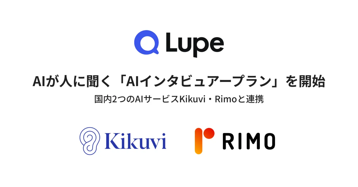 Lupeは、日本の大手AIリサーチサービス2社と連携し、それぞれの特性を活かしてリサーチプランを提供します。KikuviやRimo Interviewerなど、さまざまなAIインタビュアーを活用することで、目的や状況に応じた最も効果的な調査が可能となります。また、月額料金なしの調査費用のみで利用できるため、コスト面でも優れた選択肢です。