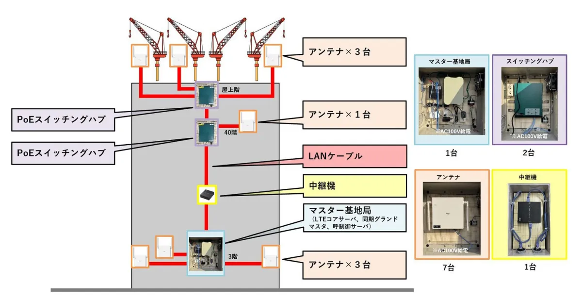この技術は都心の高層オフィスビルの施工現場で実際に運用され、すでにその性能が確認されています。低層階に設置されたマスター基地局と、タワークレーンのガイドマストに取り付けられたアンテナが、タワークレーンオペレータとの間でクリアな通話を実現。通信性能の高さが評価され、この秋には「TOKYO TORCH」街区で施工中の「Torch Tower」での導入が決定しています。