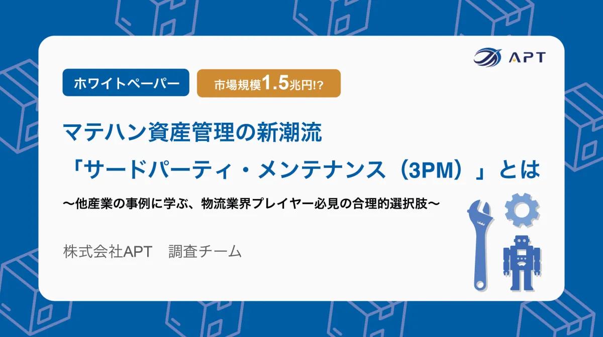 近年、物流・マテハン業界では、保守・メンテナンスをメーカーに委ねるモデルが一般的ですが、これは果たして最良の選択肢なのでしょうか。株式会社APTが発表した調査レポート「サードパーティ・メンテナンス(3PM)とは 〜他産業の事例に学ぶ、物流業界プレイヤー必見の合理的選択肢〜」は、その疑問に答えるための重要な道標となります。