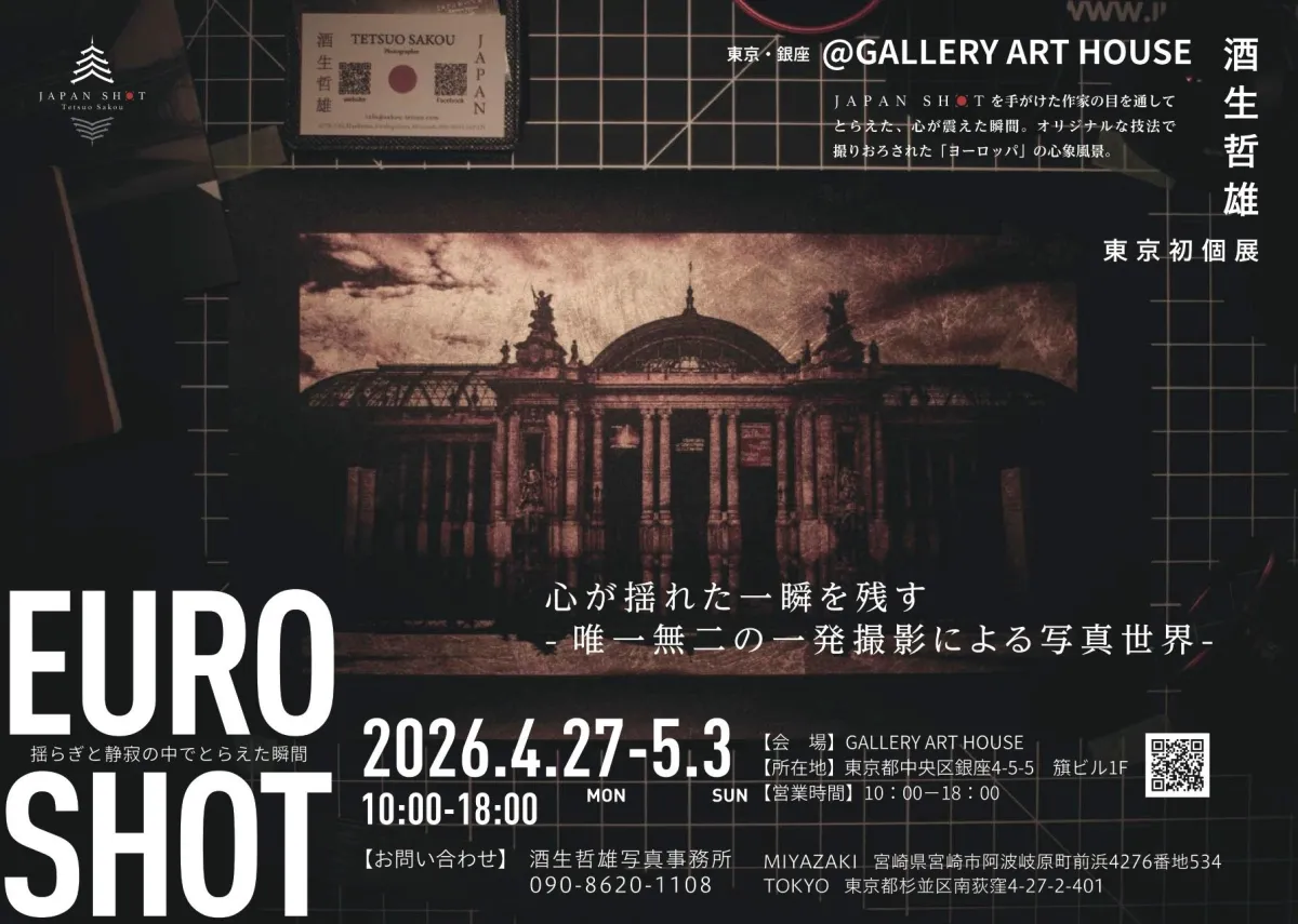 酒生哲雄による東京での初めての個展「EURO SHOT」が、2026年4月21日から5月3日まで開催されます。この展示会では、彼がヨーロッパで撮影した最新作を公開し、訪れる人々に感動を与えることを目指しています。