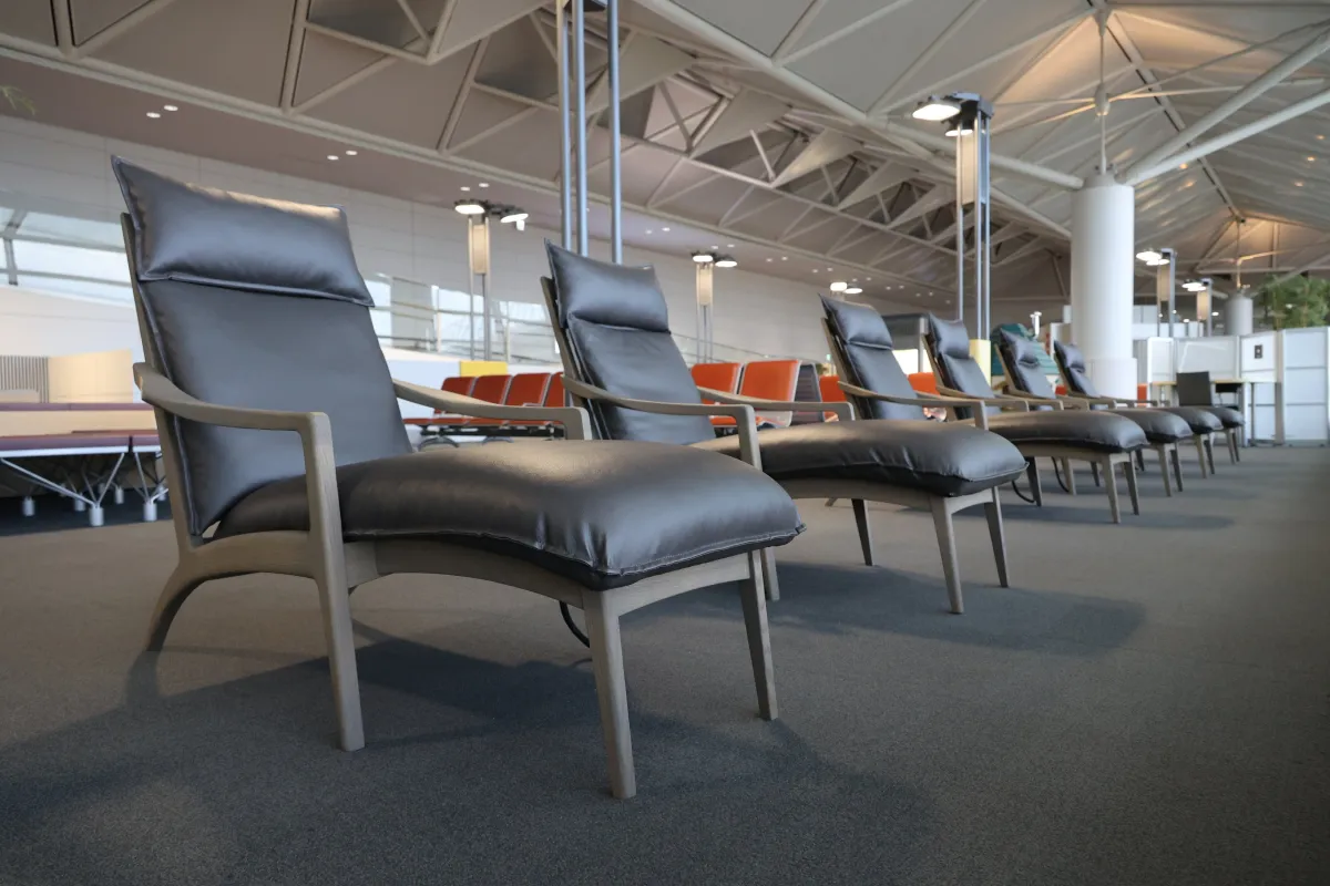 中部国際空港では、国際線専用に設定された限られたリクライニング席が多くの利用者に支持されてきました。しかし、その席数では需要に応えられず、特に利用者が集中する時間帯においては多くの方が利用できないという問題がありました。そこで、空港運営側は、新たに国際線の数を増やすのはもちろん、国内線にも席を設けることにしたのです。