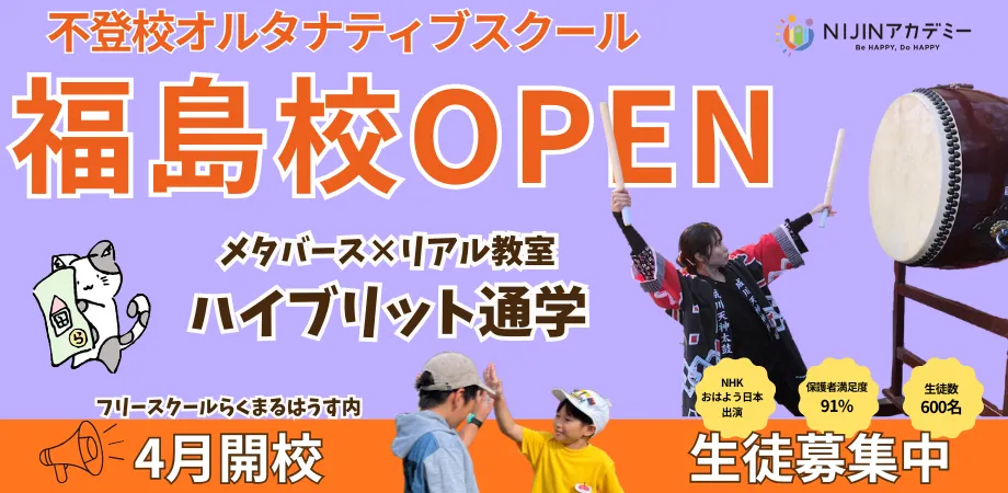 不登校の小中学生に新しい学びの選択肢を提供するため、株式会社NIJINが運営する「NIJINアカデミー」が、2026年4月7日(火)に福島県に新たな校舎を開校します。この福島校は、東北地域では2番目となるリアル校であり、多様なニーズに応える環境を整えています。