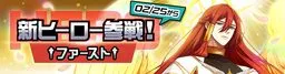 新ヒーロー「†ファースト†」の実装を記念するイベントが各種用意されています。まず注目なのは、ヒーロー獲得のチャンスが増えるピックアップヒーローガチャです。このガチャは、期間中に「†ファースト†」の出現率が通常の9倍にアップする特別仕様です。ガチャを獲得するには、2026年2月25日から2026年3月8日の間に参加する必要があります。