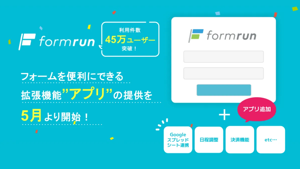 株式会社ベーシックは、同社が開発したフォーム作成管理ツール「formrun」が2025年4月時点で累計45万人のユーザーを達成したことを発表しました。これを受けて、2025年5月からは新たな拡張機能や画面デザイン、操作性を一新し、より直感的で使いやすいフォーム作成体験を提供する予定です。
