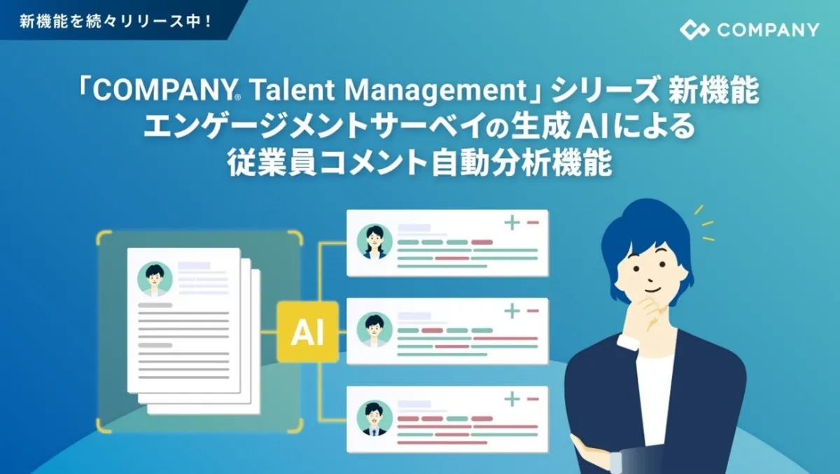 株式会社WHI Holdingsが「COMPANY Talent Management」シリーズに新たに生成AIによる自動分析機能を追加しました。この機能は、従業員のエンゲージメントサーベイから得られた自由記述コメントを自動的に解析し、リアルタイムで企業の人事部門に有益な情報を提供します。具体的には、各コメントをトピック別に分類し、ポジティブまたはネガティブなスコアを算出する機能が含まれています。