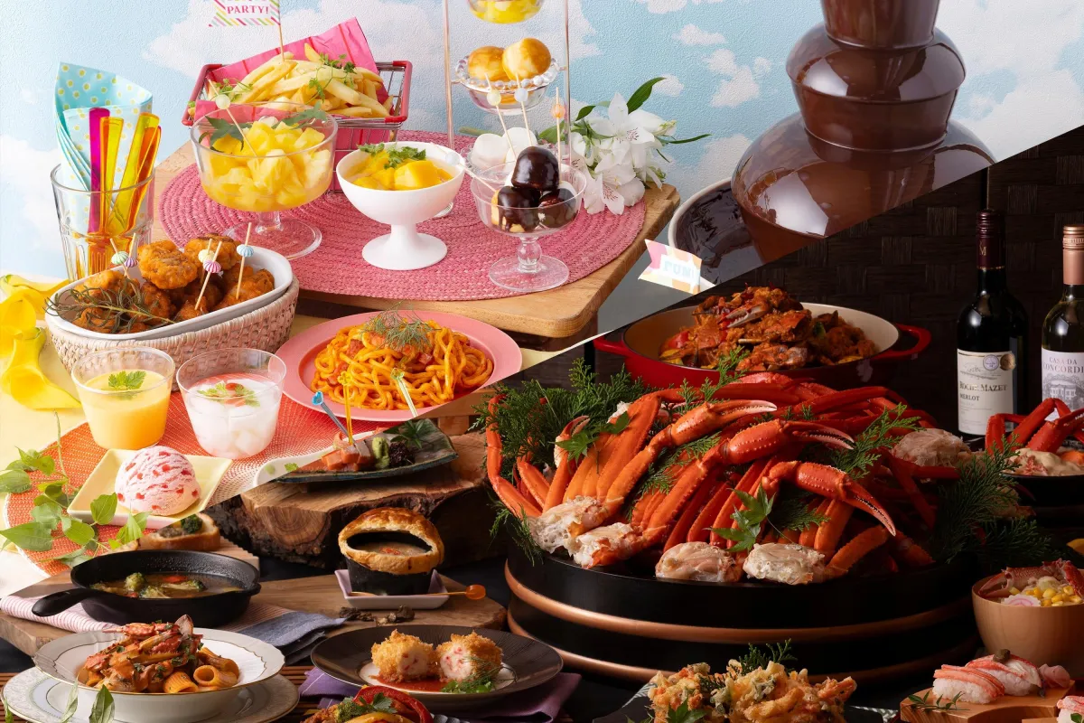 このバイキングは大江戸温泉物語Premium 山下家限定。焼き、蒸し、揚げといった様々な調理法で仕上げたカニ料理が食べ放題!
