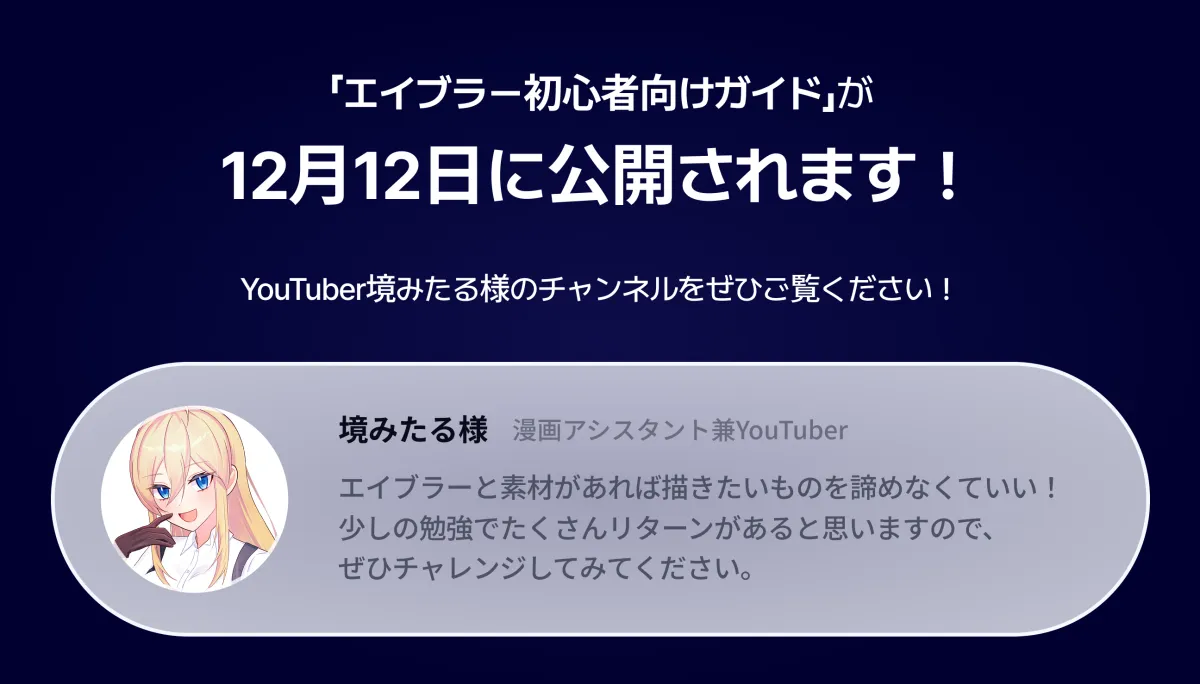 エイブラーは、クリエイターが実際の制作現場で直面する課題に応える形で、ユーザーにとって使いやすい環境を整えることを重要視しています。境みたる氏とのコラボは、その一環であり、彼の豊富な経験を活かし、初心者が実務に役立つ方法で学べるコンテンツを提供します。エイブラーの担当者は、今後もリアルな声を反映した学習環境づくりに力を入れ、クリエイターが創作に集中できる環境整備を進める意向を示しています。