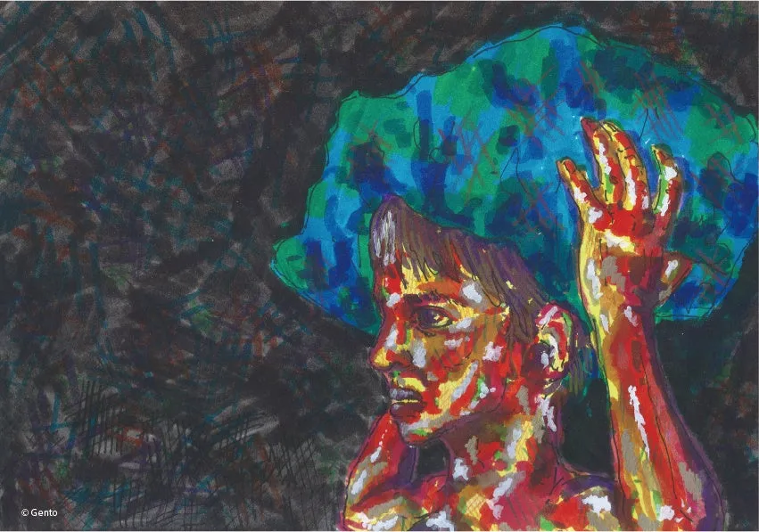 特に気になる方には、『Think About a Refugee』キャンペーンの特製カードが、難民援助活動の資料を請求した方にプレゼントされます。カードには内田さんのメッセージと共に、Gentoさんが描いた「未来を運ぶ少年」の作品が表紙として使用されています。この作品は、難民の未来に希望をもたらすメッセージを込めています。