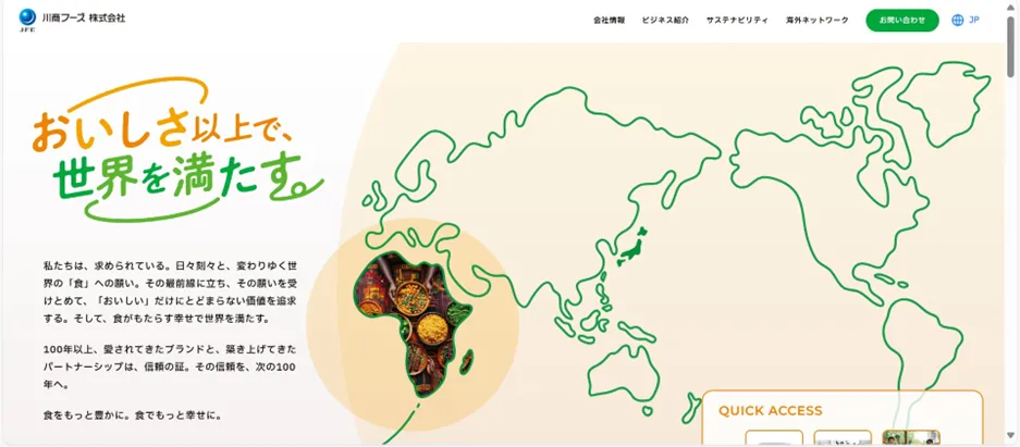 川商フーズ、企業パーパスを中心にホームページリニューアル