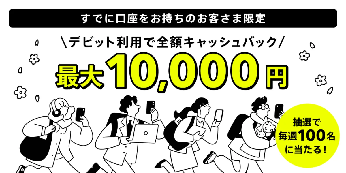 キャッシュバックの特典は、毎週の抽選で決定します。期間中のデビット利用分や差額出金の合計利用額に基づき、特定の週に選ばれた100名にはその利用額が全額戻ってきます。特典獲得の具体的なスケジュールも公表されており、利用者は自分の当選結果を追いやすくなっています。