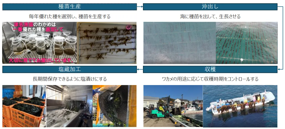 淡路島の佐野地区は、紀淡海峡に面した沿岸地域で、豊かな自然環境から良質のわかめが育ちます。しかし、近年では漁業者の高齢化や担い手不足、気候変動による漁獲量の減少など、多くの課題に直面しています。これにより、かつて繁栄を誇った漁業が維持困難な状況に陥っているのです。これを受けて、津名漁協の漁業者たちは企業との連携を強化し、持続可能なモデルの構築を目指しています。