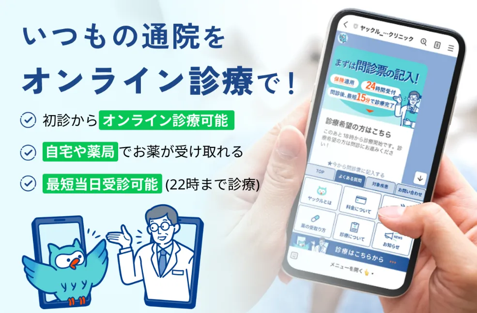 オンライン診療のため、病院の診療時間に拘束されることなく、仕事の合間や夜間に診療を受けられるのは、特に忙しい世代にとっての安心材料です。ヤックルでは、金曜日から日曜日にかけて特に柔軟な診療時間を設けており、利用者のライフスタイルに合わせた医療を提供しています。