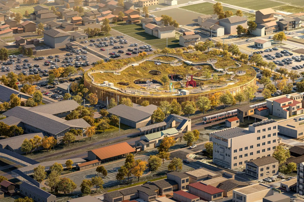 藤本氏は、soranotaniを「多様な人や活動が響き合う場所」とし、盆地という地形の特性を活かした大きな屋根構造を設計しました。この建物の下では、地域住民や学生、観光客など、様々な人々が自然に交流し、それぞれの活動が活発に行われます。設計の中心には、多様性と一体性の共存をテーマにした新しい景観が描かれています。空に開かれたこの場からは、地域や世界の様々な問いが立ち上り、人々の創造や対話が生まれるでしょう。