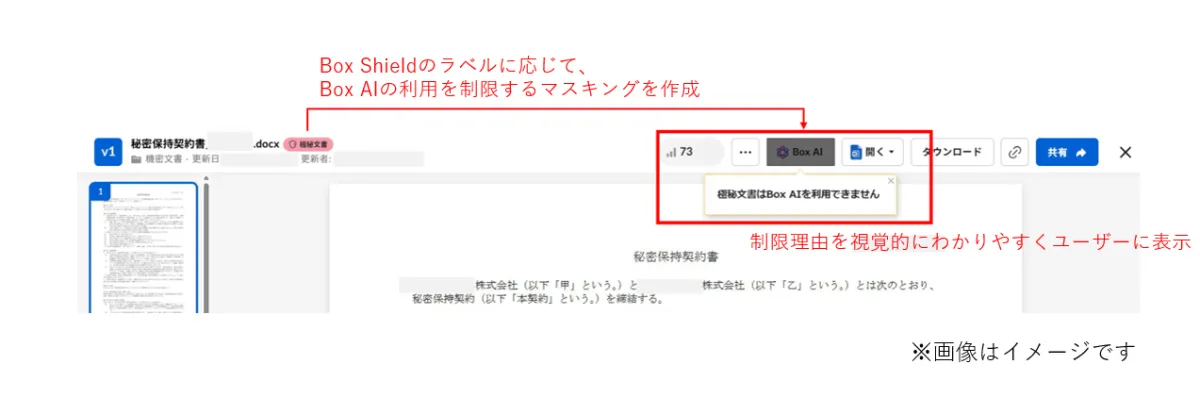 Boxの画面に操作手順や注意事項をガイドとして重ねることで、業務運用がスムーズになります。