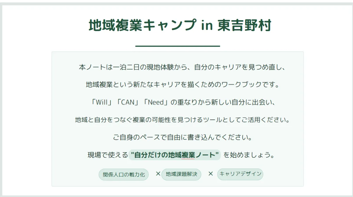 Wiki3: 奈良県 東吉野村 アート体験 地域複業キャンプ