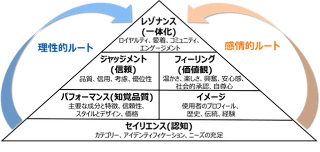 このように、ピラミッドの各ブロックごとの評価を競合他社と比較することで、自社の強みや弱みを把握できます。ブランドレゾナンスピラミッド分析を取り入れることで、電力会社はレゾナンスに至るさまざまな取り組みを行い、ブランド価値の向上に向けた戦略を立てる必要があります。