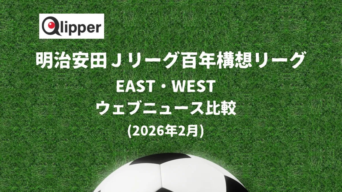 株式会社トドオナダが運営するPR効果測定サービス「Qlipper」は、2月6日から18日までの間、J1リーグのEASTとWESTに関するウェブニュースの調査を行いました。4,000を超えるWEBメディアをモニタリングし、各記事の数やページビュー(PV)を集計。その結果をもとに、各地域のリーグの状況を比較しました。
