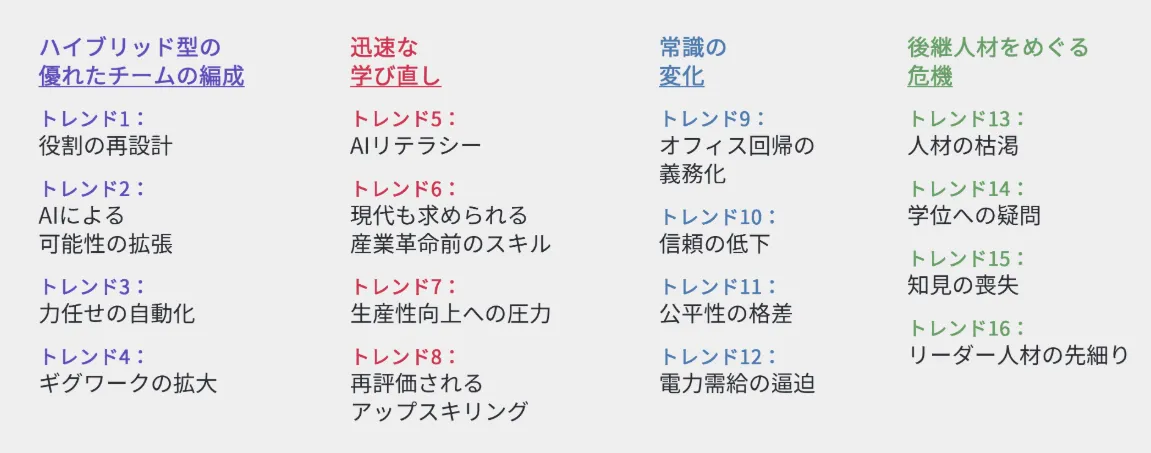 今後の働き方がどのように進化していくのか、しっかりと把握し、変化に対応した戦略を立てることが求められます。