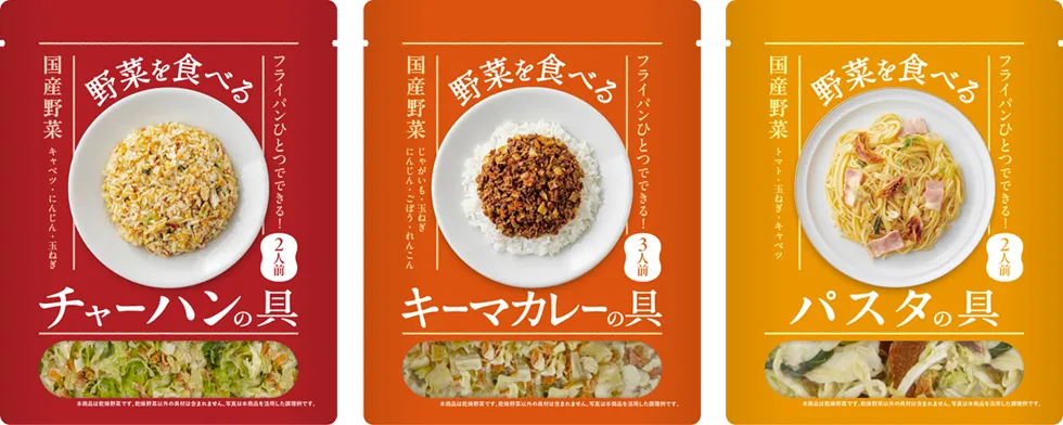 1袋あたり2~3人前のサイズが設計されており、使い切りやすく、乾燥野菜を初めて使う方でも手に取りやすい内容となっています。さらに、商品はチャーハン用、キーマカレー用、パスタ用の3種類のバリエーションが用意されており、ユーザーの好みに合わせて選ぶことができます。各商品は324円(税込)で販売されます。