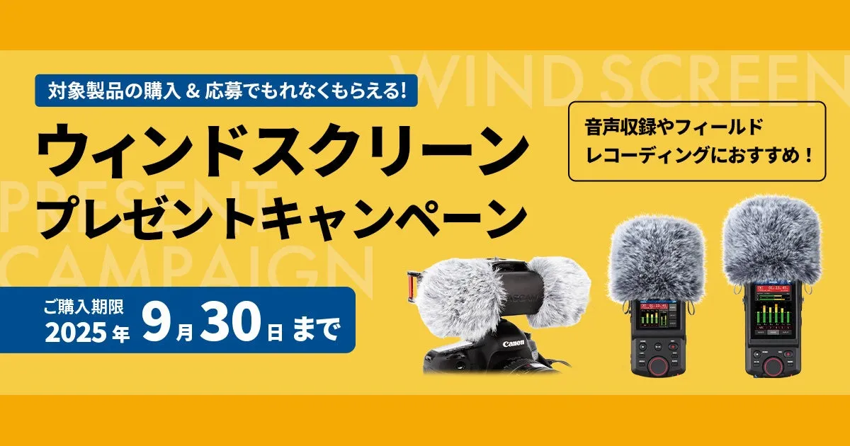 音声収録やフィールドレコーディングで高いパフォーマンスを発揮するTASCAMの次世代ポータブルレコーダーが、特別なキャンペーンを展開します。「映像・動画クリエイターを応援!キャンペーン」が2025年5月1日から始まり、対象製品を購入した方には、優れた防風効果を持つウィンドスクリーンがプレゼントされます。