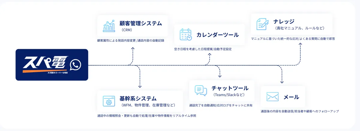「スパ電」は、架電・受電の両方に対応した自律型電話エージェントです。このシステムは、AI技術を利用して業務の自動化を図っており、電話業務の生産性向上に寄与しています。新たに追加された「会話型の日程調整」機能では、AIが求職者に直接電話をかけ、自然な会話の中で調整を行います。このプロセスは以下のステップで進行します: