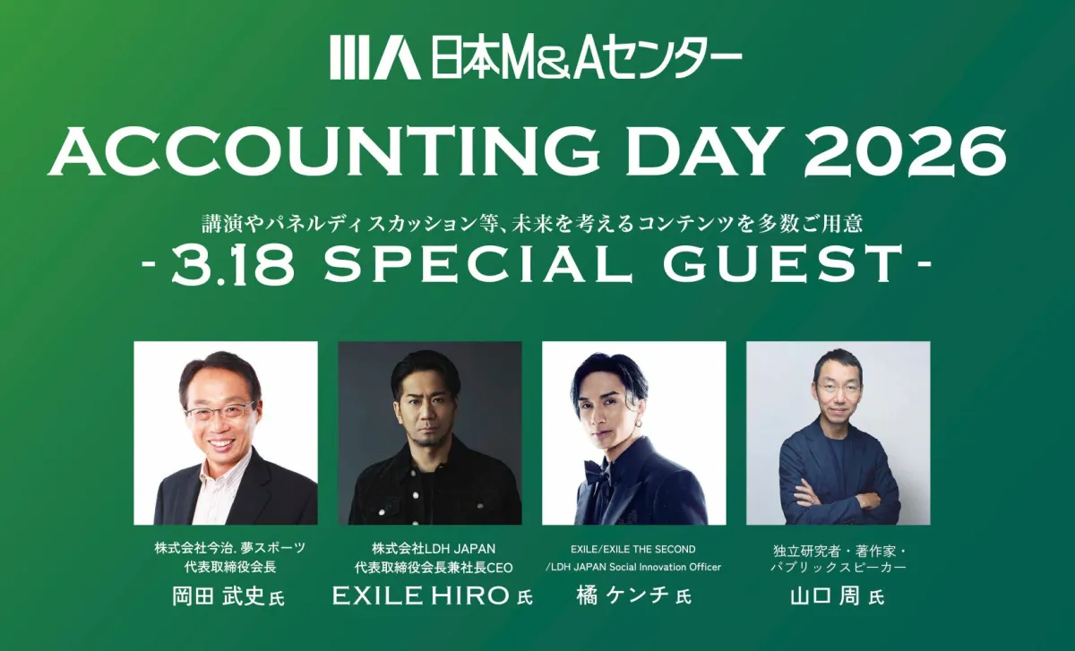 株式会社日本M&Aセンターは、2026年3月17日(火)・18日(水)に東京都江東区のTOYOTA ARENA TOKYOで「ACCOUNTING DAY 2026」を開催します。このイベントは、全国の会計事務所のために特別に設計されており、業界の先端を行く専門家との交流が期待されています。