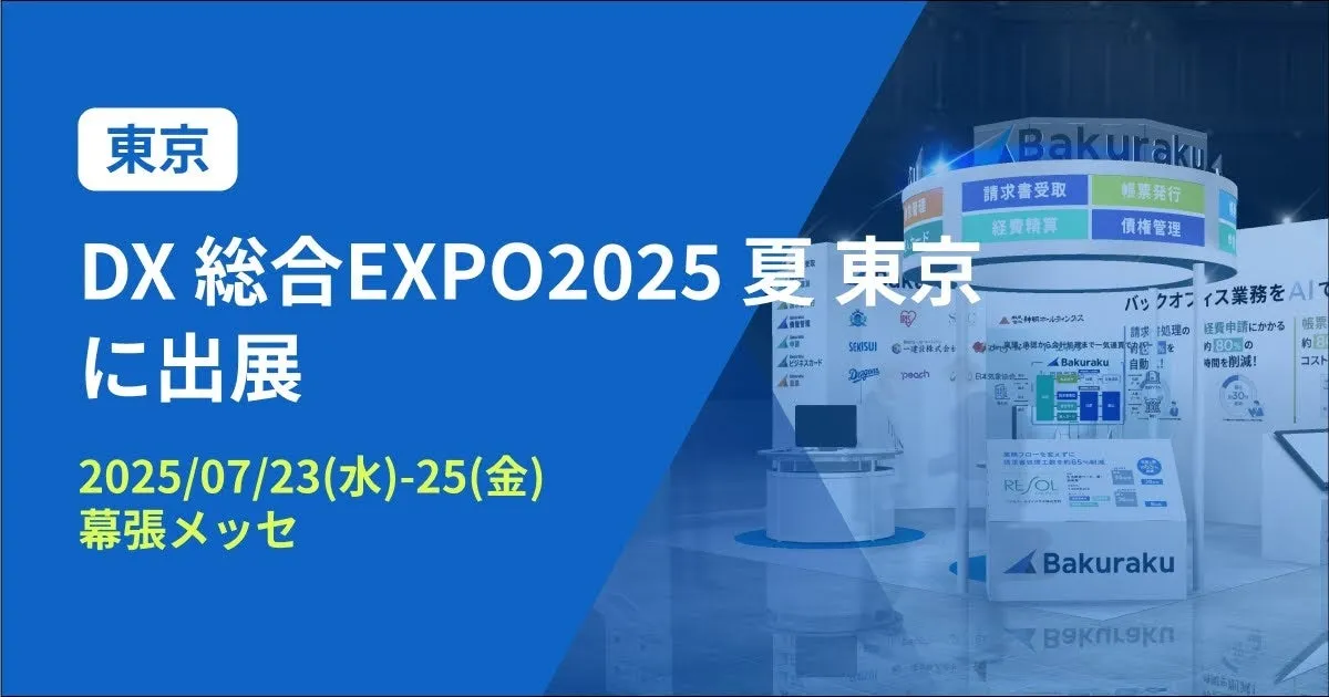 2025年7月23日(水)から25日(金)まで、幕張メッセで開催される「DX総合EXPO 2025 夏 東京」に、株式会社LayerXが出展します。この展示会では、法人支出管理や勤怠管理などの業務を効率化するAIクラウドサービス「バクラク」を紹介します。