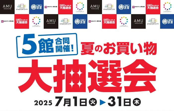 2025年7月1日から31日の1ヶ月間、長崎で特別なキャンペーンが実施されます。アミュプラザ長崎、長崎スタジアムシティ、浜屋百貨店、みらい長崎ココウォーク、そしてゆめタウン夢彩都という5つの商業施設が力を合わせ、夏のショッピングをさらに楽しくする大抽選会を開催するのです。この取り組みは地域の皆さんに、日常にさらなる楽しいひとときを提供したいという願いから始まりました。